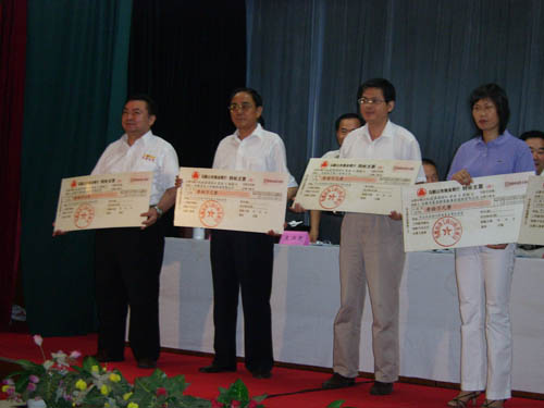 2006年7月26日下战书,马鞍山市2005年获省闻名牌号企业惩处大会在市当局东二楼集会室进行,列席本 次集会的首要带领有省工商局副局长黄家华、市人大常委会副主任杜永田、市当局副市长刘繁华、市政协 副主席孙文植、市当局副秘书长王兴无、省工商局牌号局局长刘国建等。