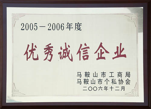 我公司获市工商局“05-06年度优异诚信企业”称呼